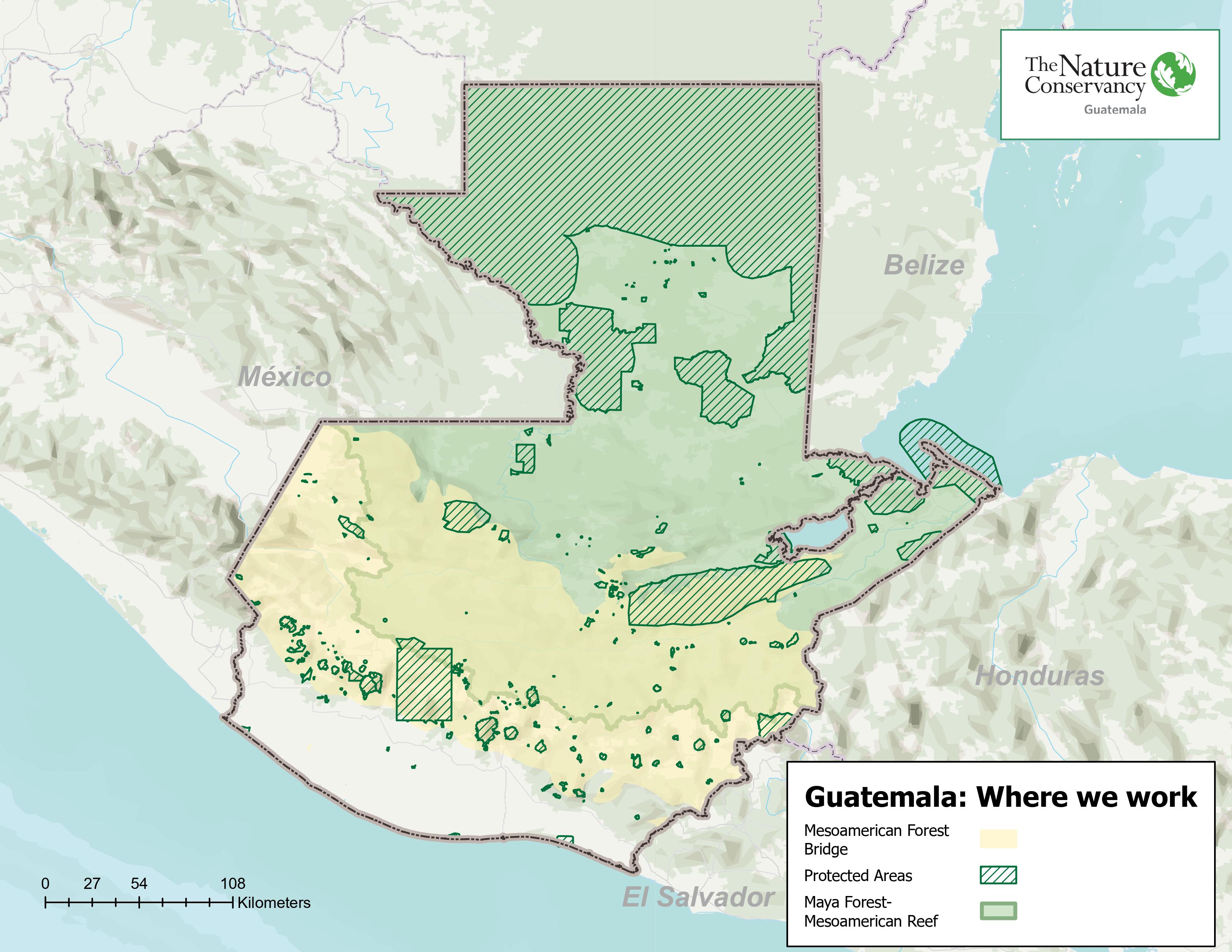 Guatemala is a small country territory-wise, with diverse and relevant regional ecosystems. Based on the country’s biological, economic, and socio-cultural characteristics, The Nature Conservancy has identified two priority areas in Guatemala, known as Iconic Places: the Maya Forest-Mesoamerican Reef and the Mesoamerican Forest Corridor. These Iconic Places are part of a series of 12 Iconic Places identified throughout Latin America.