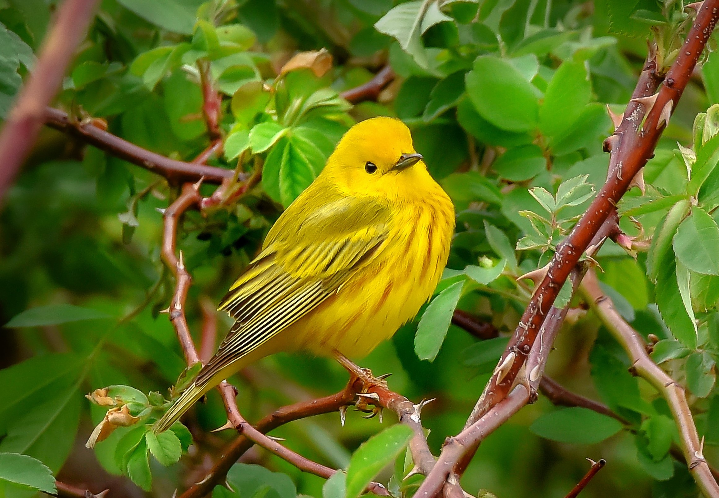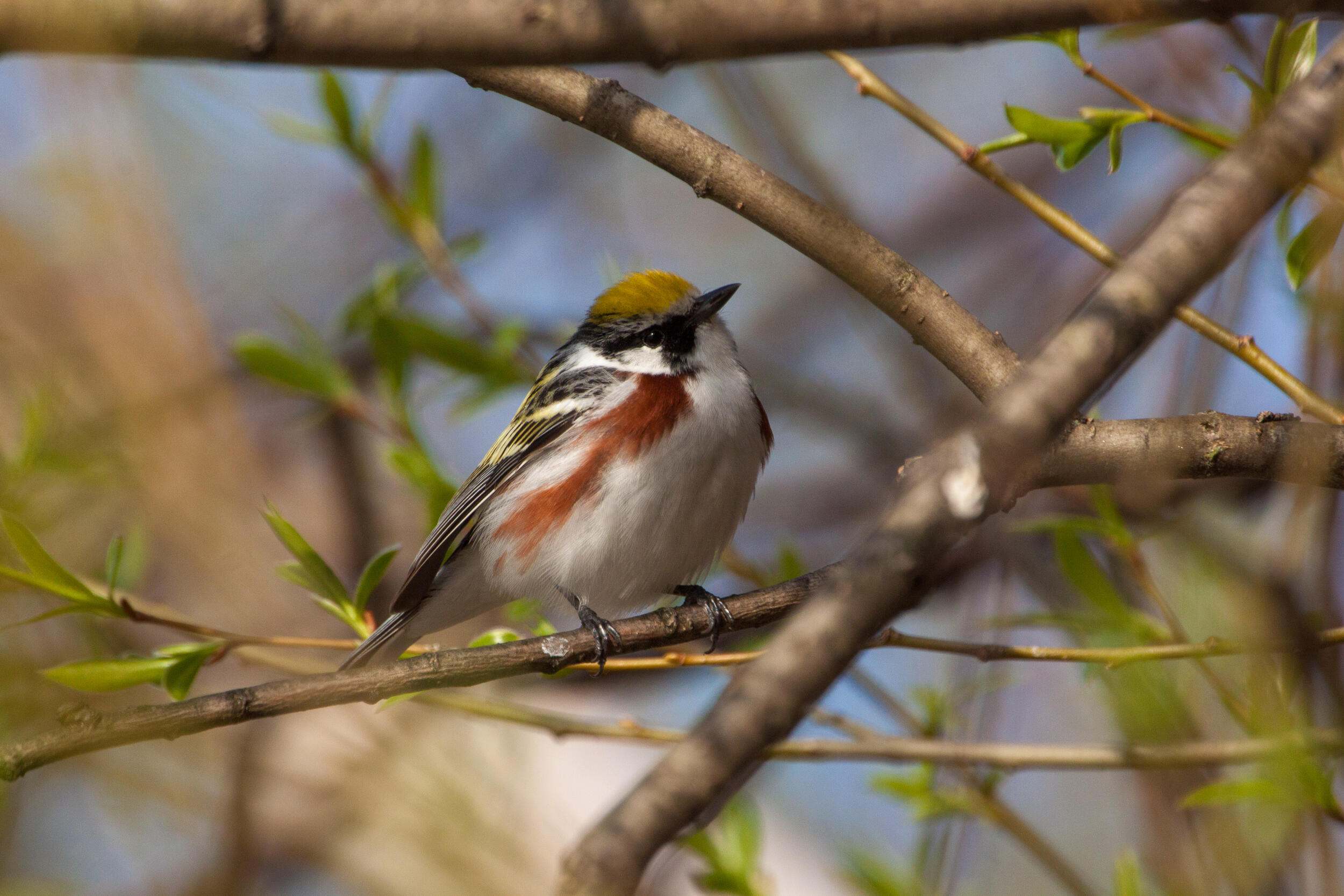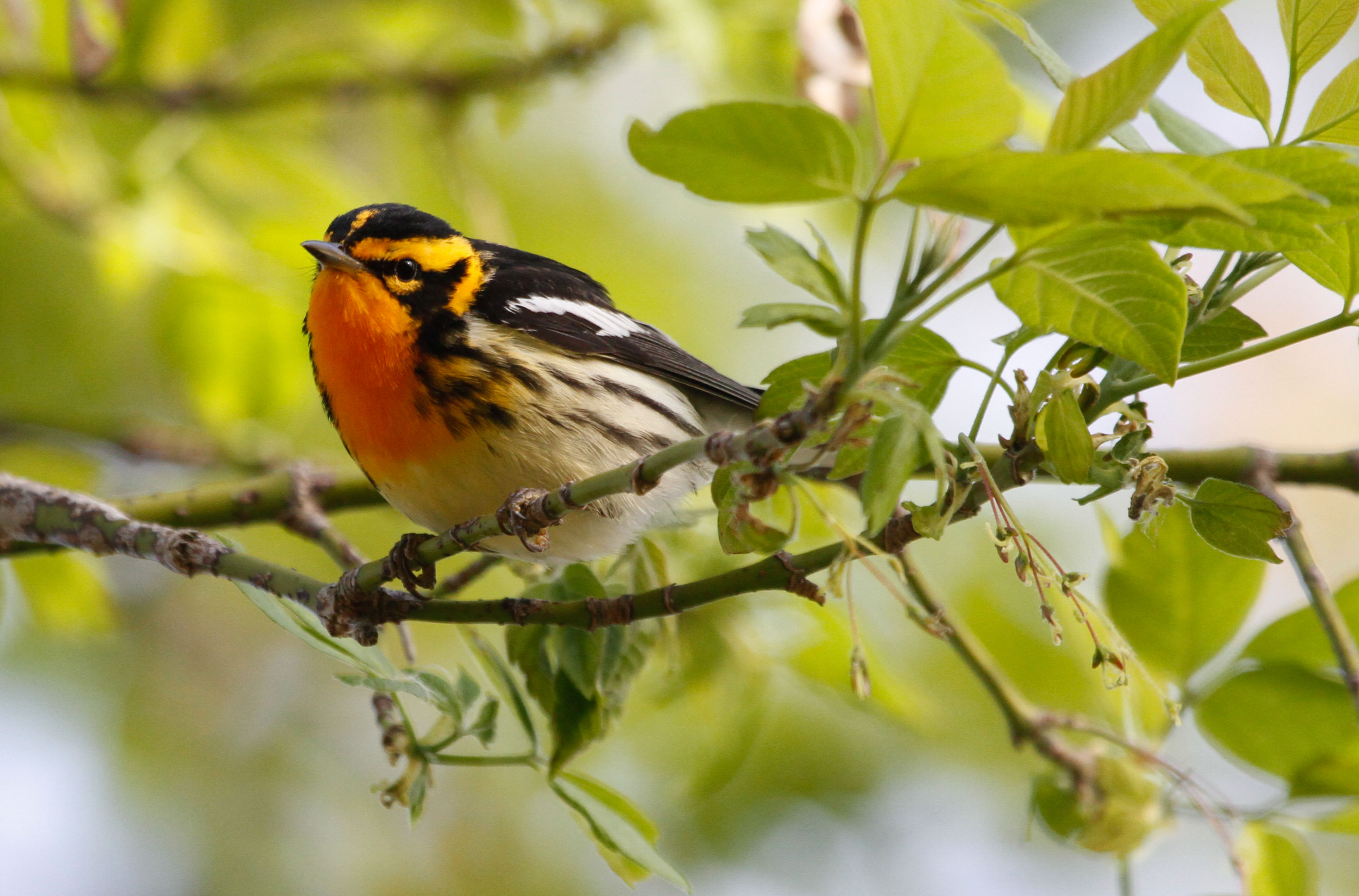 Probably the most well-known birds of the spring migration, warblers are small songbirds that spend their summers in the Midwest and Canada. Many warblers spend most of their time far up in the tree canopy, so learning to identify these birds by their calls and songs can help you know where to look for them! Click the photos below to learn a little more about each bird.