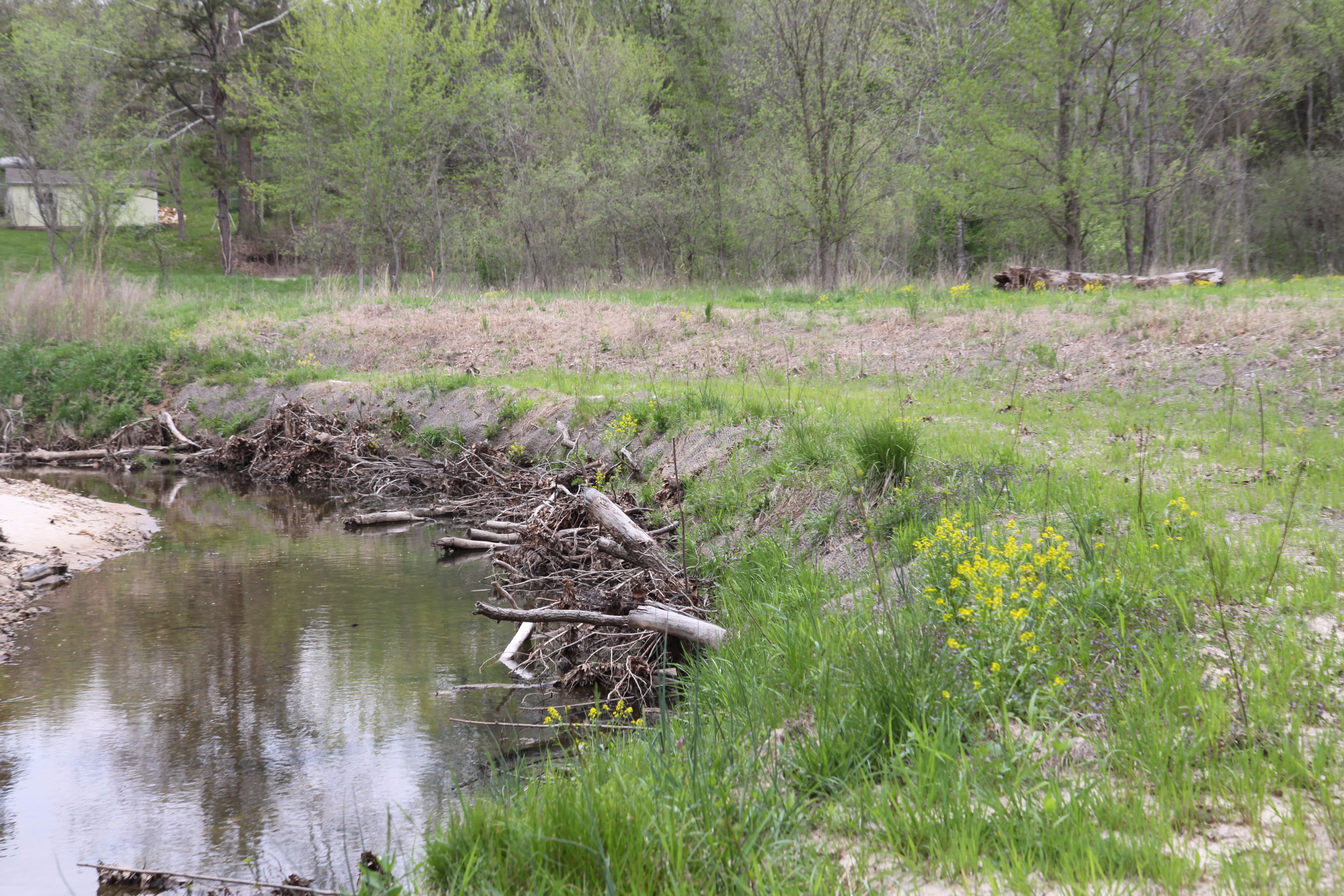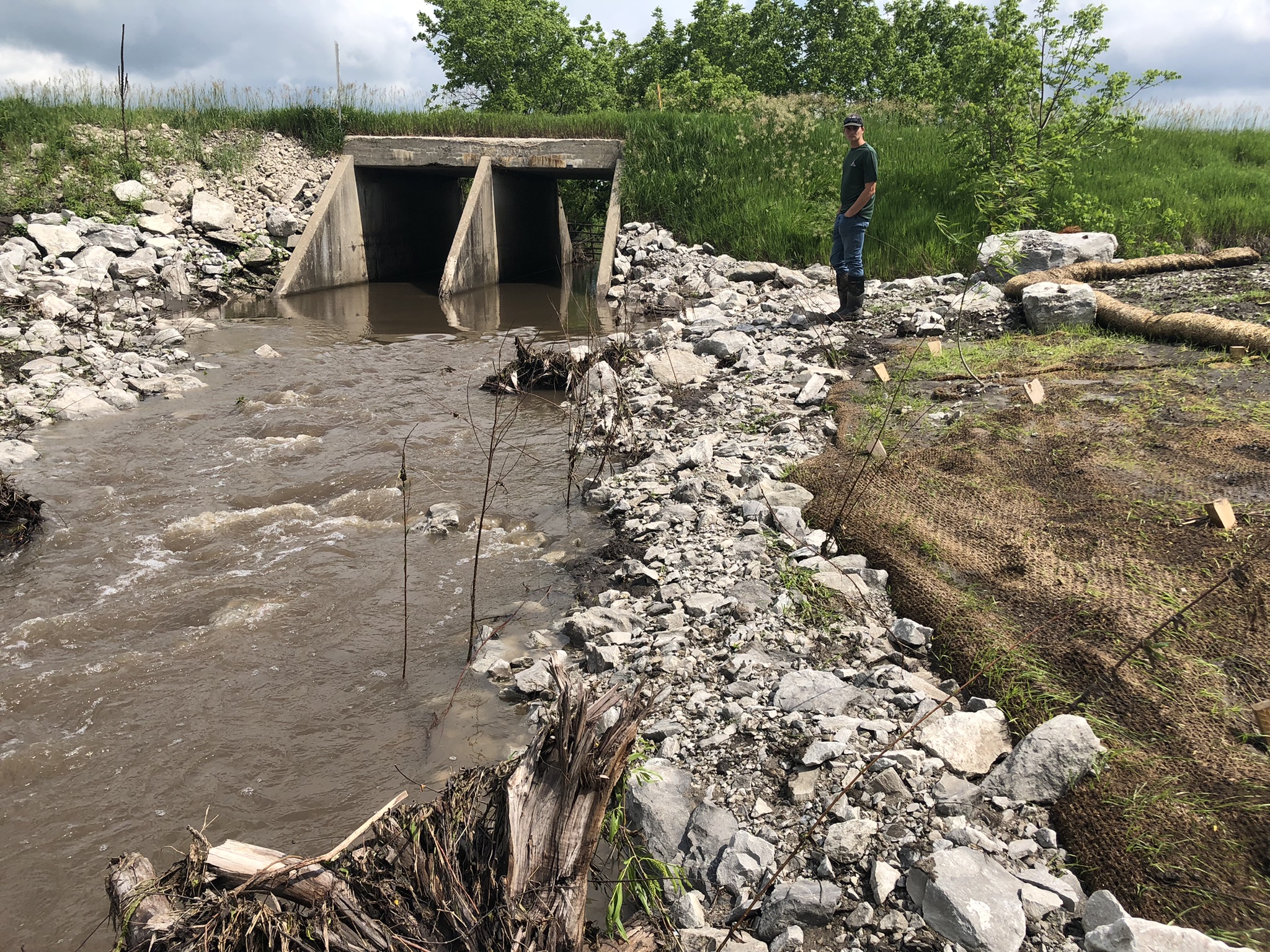 Now both sides of the creek are re-connected through the culvert using a bioengineered underwater ramp that ensures a more gradual and natural slope. This should allow Topeka shiners and other species to migrate up and downstream to access more habitat.