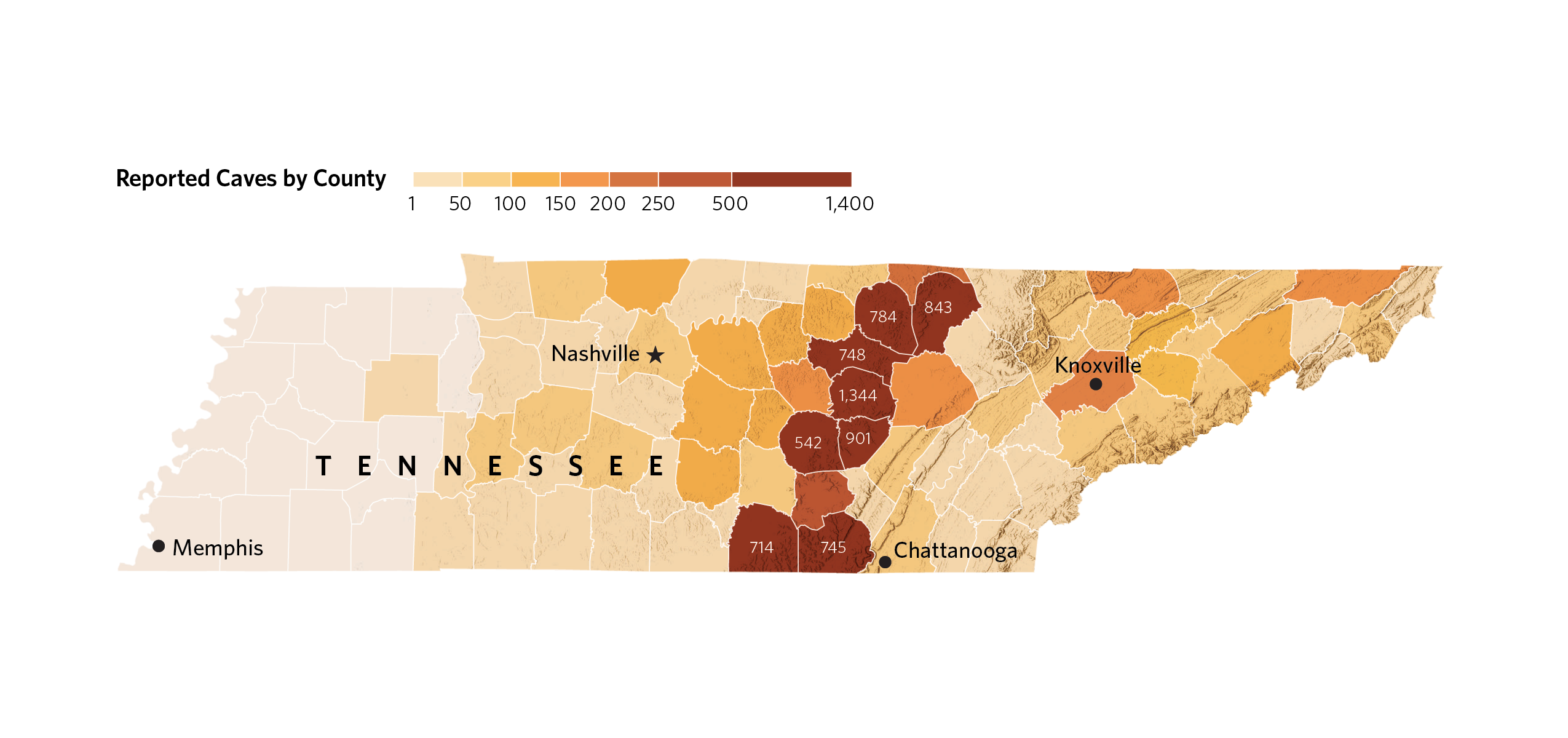 Holliday himself is at the center of Tennessee’s bat action and cave protection. After spending five years surveying life in the state’s caves, Holliday pivoted his program in the early days of white-nose syndrome’s outbreak to focus on bat research and conservation. To protect an animal is to protect its habitat, he says. Tennessee is home to 11,500 known limestone caves, the most of any state in the country; it is a bounty of underground space stemming from the region’s limestone geology.
