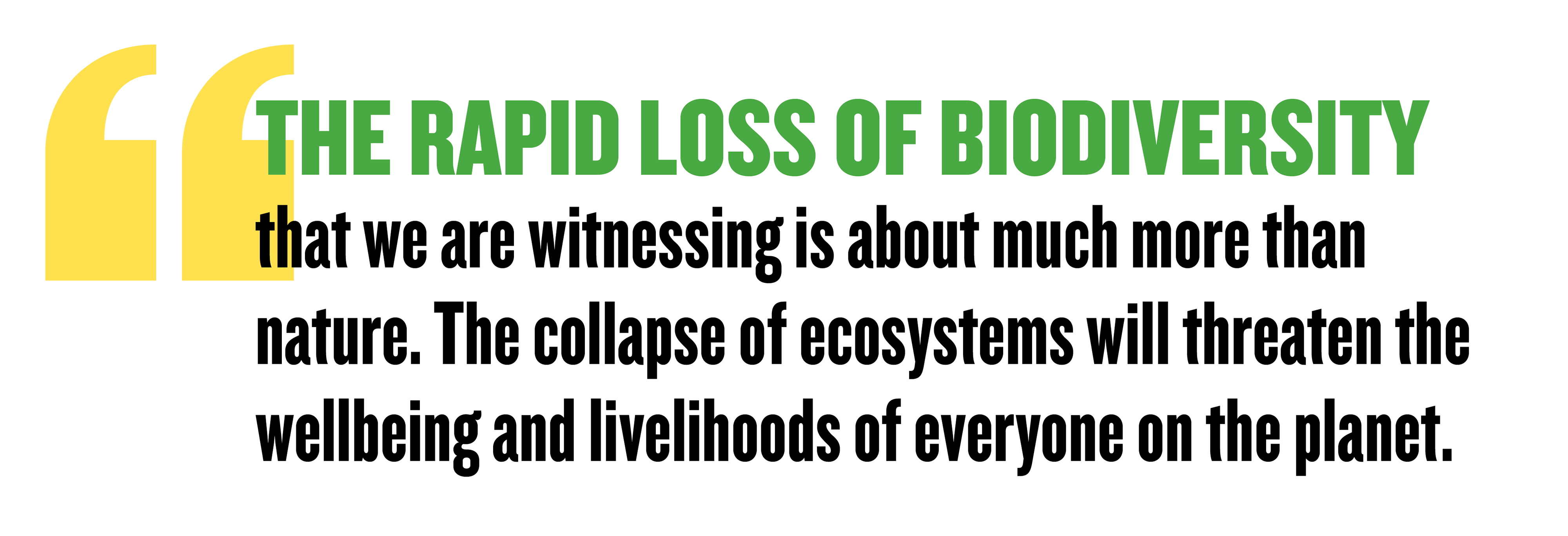 But biodiversity advocates must learn an important lesson from climate activists. Global climate action gained momentum only after it became clear that the issue was about more than the environment, and would require a transformation of transport, energy, agriculture, infrastructure, and many industries. Likewise, the rapid loss of biodiversity that we are witnessing is about much more than nature. The collapse of ecosystems will threaten the wellbeing and livelihoods of everyone on the planet. Accordingly, the CBD must move beyond traditional notions of “conservation” to engage with all relevant sectors of the economy and civil society.