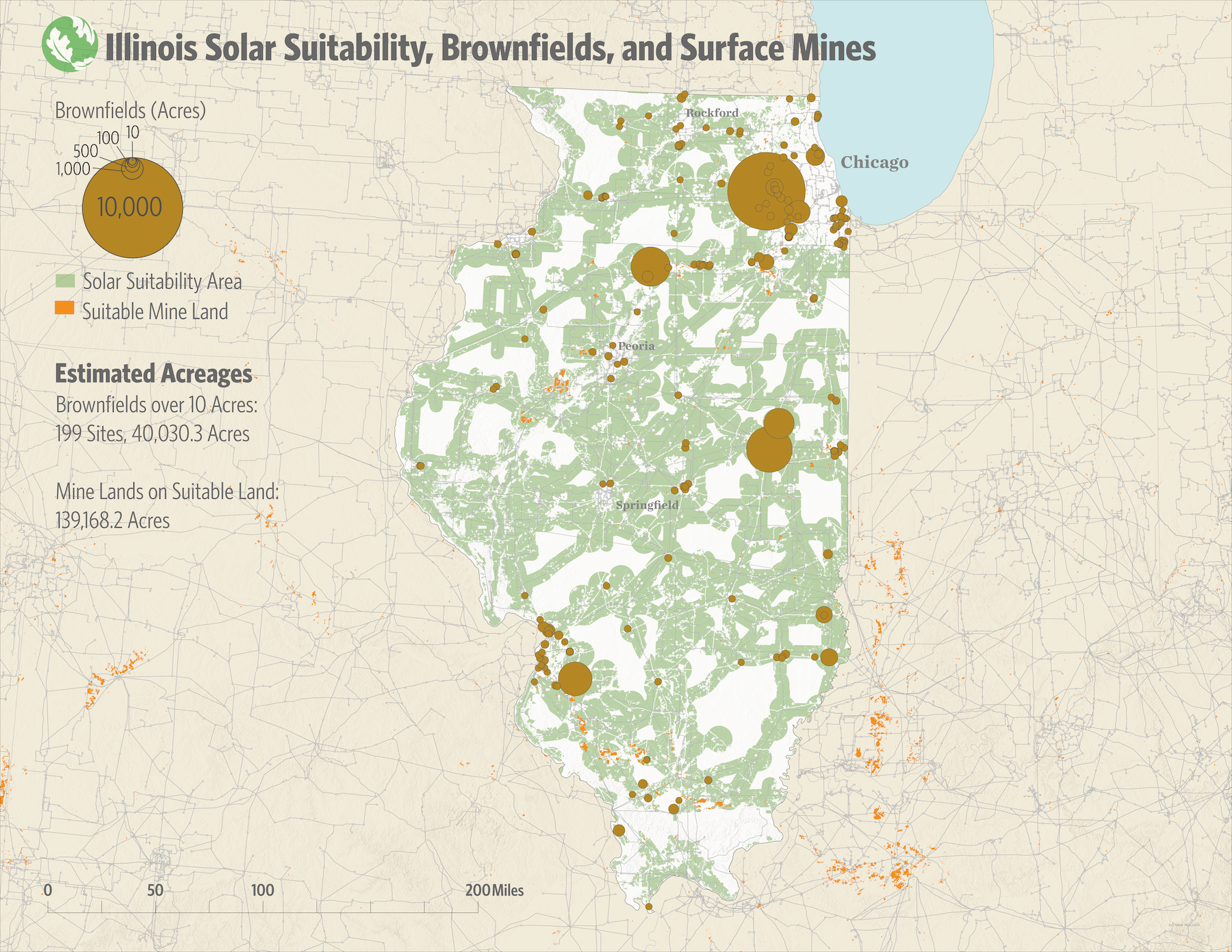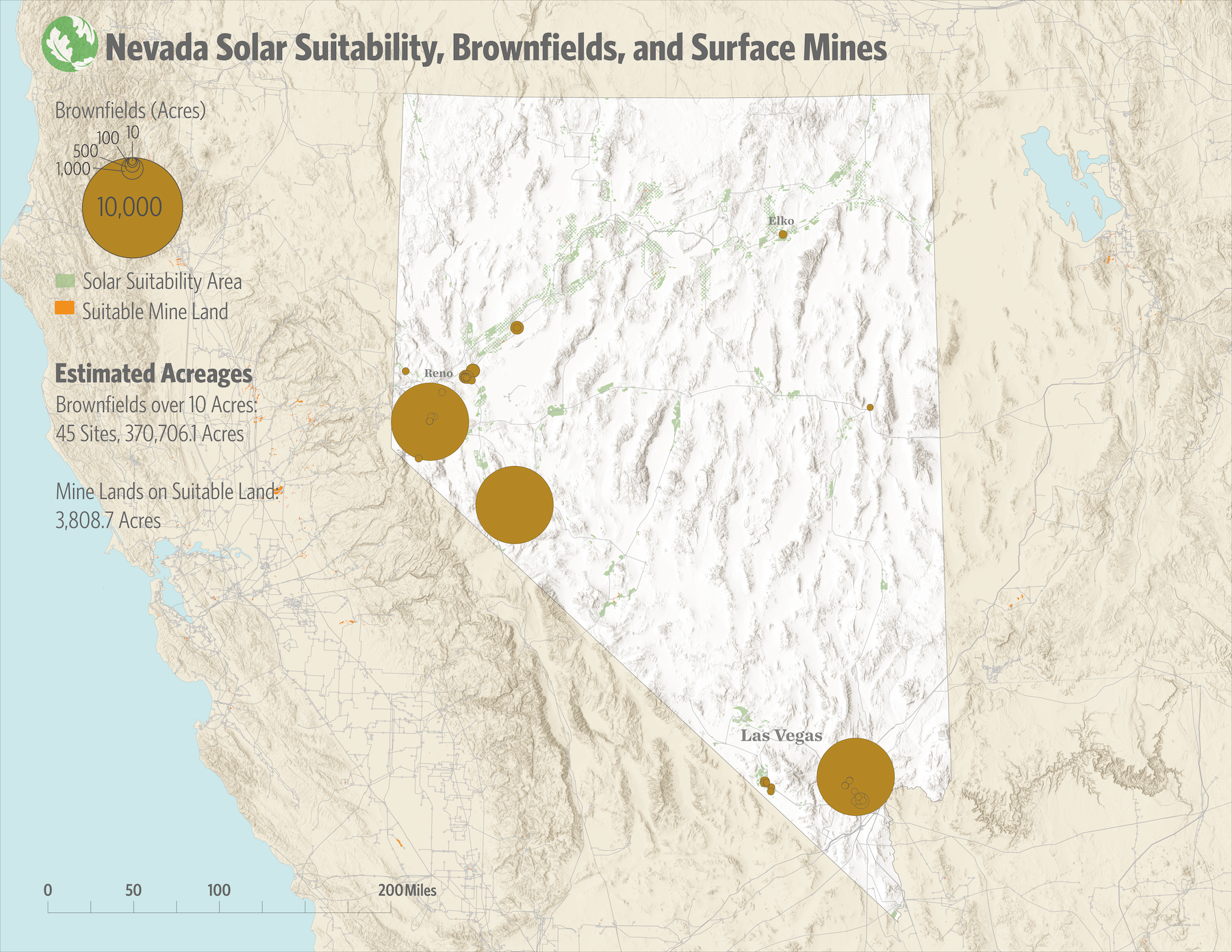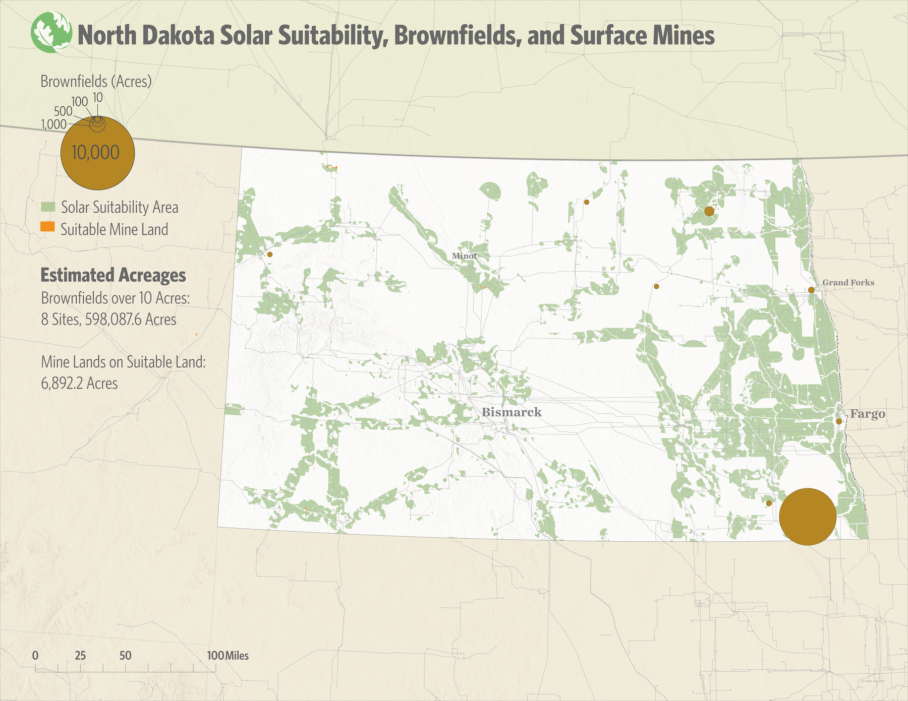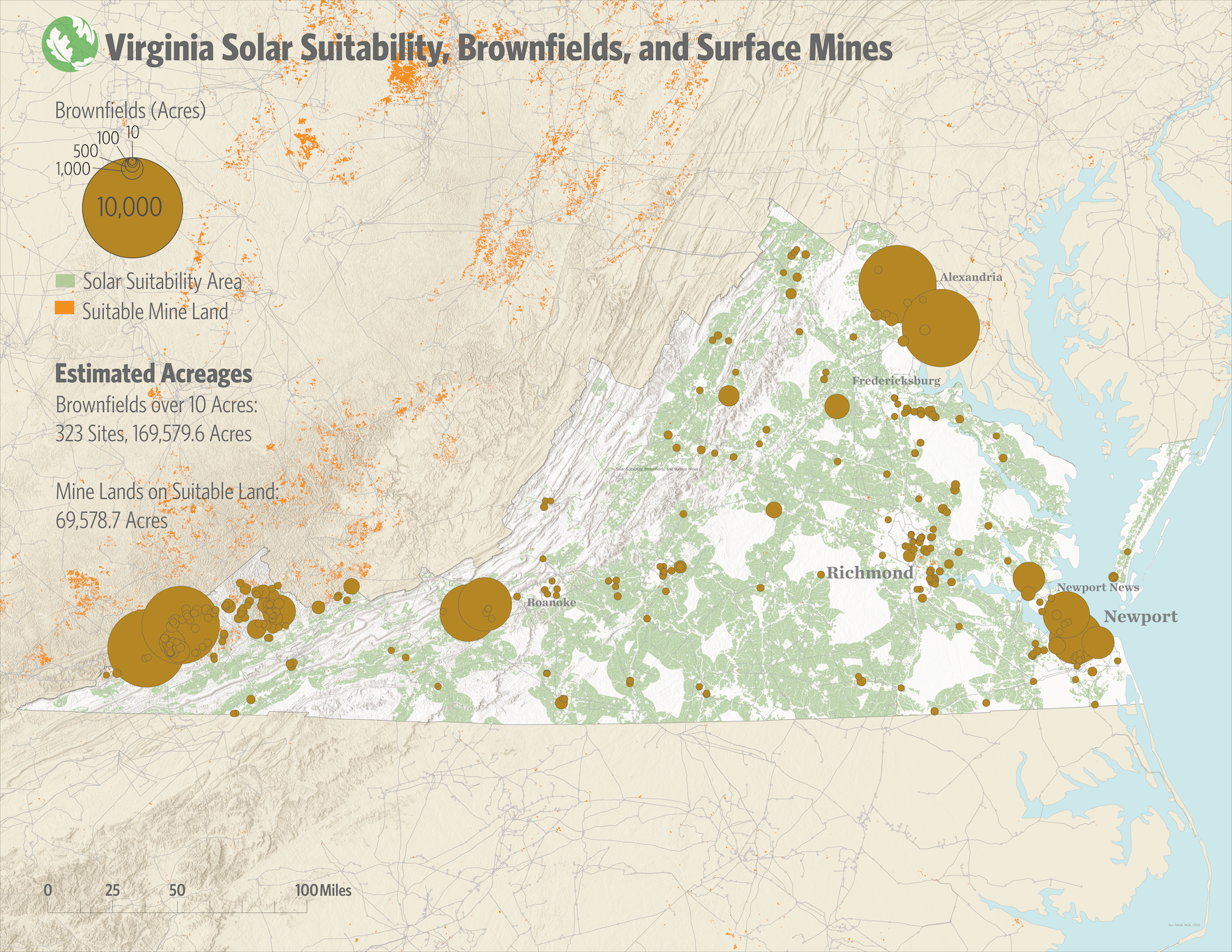 Worldwide there are an estimated 25 million acres of active and inactive mine lands, enough to accommodate a large amount of renewable energy development. The Mining the Sun national webmap shows where lands, including former mines and brownfields, in the U.S. already exist. This navigable map goes one step further outlining lands that are suitable to renewable energy development so energy developers, utilities and state and federal energy offices can easily identify lands that minimize impacts to nature.