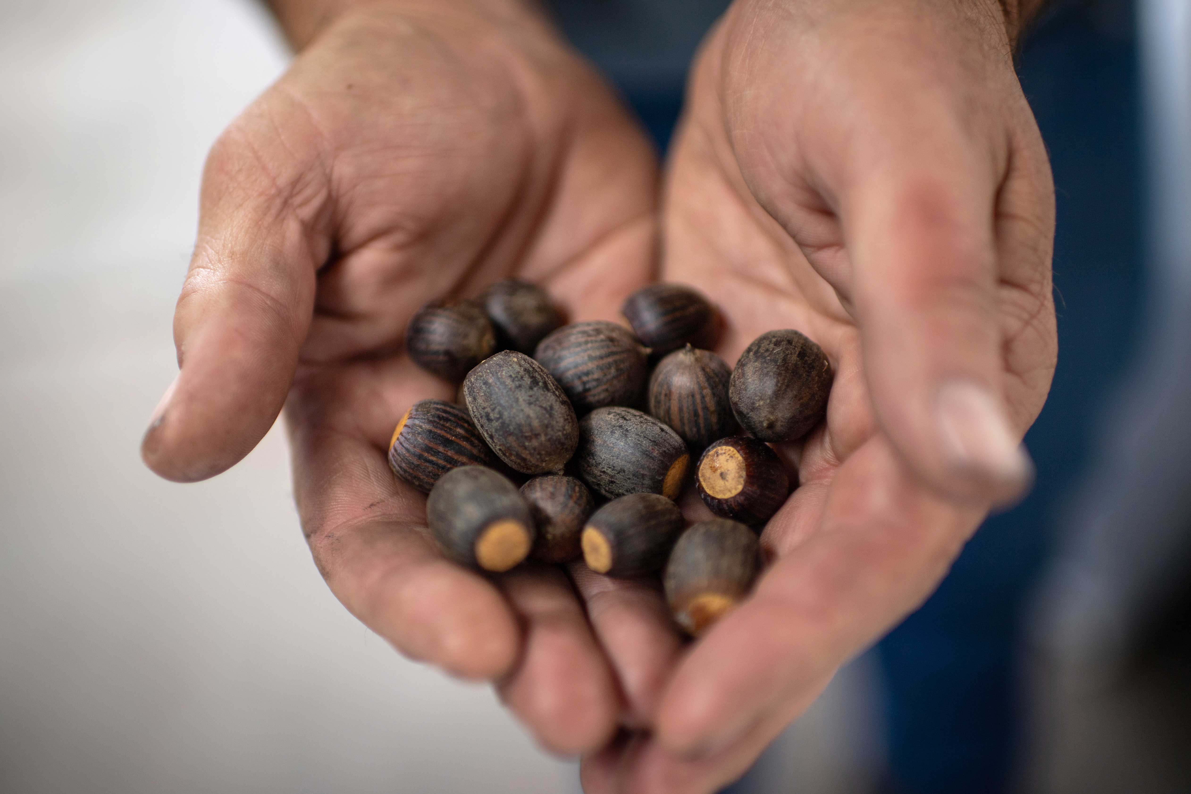 Reforestation A worker holds various native species in a reforestation project area in Extrema, Minas Gerais, Brazil. © Felipe Fittipaldi
