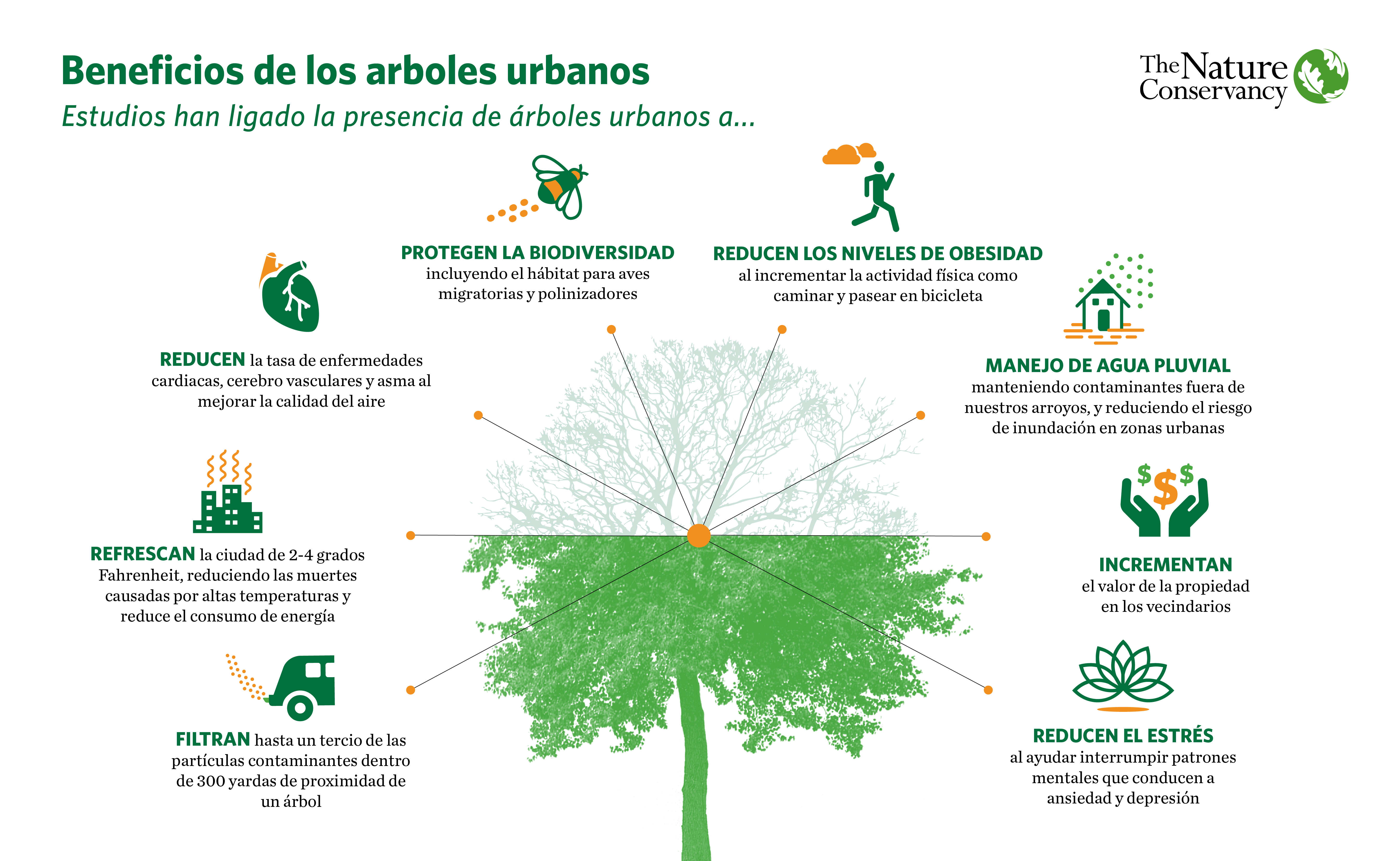 Los árboles urbanos ofrecen todos estos beneficios y más.